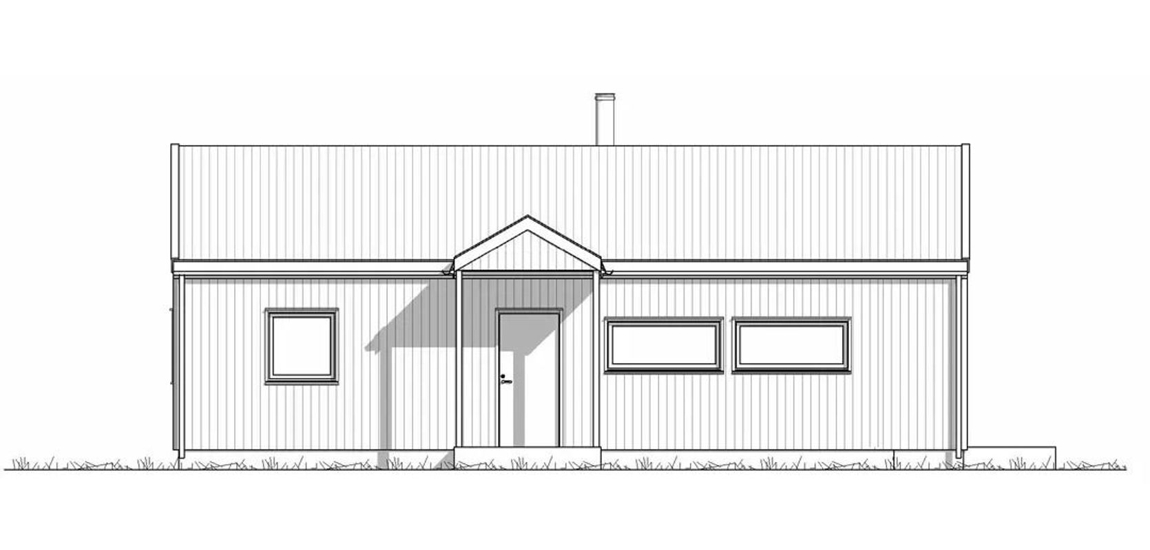 Hytta har en sentralt plassert hovedinngang langs den ene langveggen. Denne inngangen er beskyttet av et takoverbygg med tilstrekkelig dybde, som gir beskyttelse mot vær og vind. Når du går inn i hytta, åpner oppholdsrommet seg opp i gavl mot sørveggen. Dette gir en flott visuell effekt, da man umiddelbart blir møtt med en fantastisk utsikt over landskapet. Kortsiden av oppholdsrommet har et rikt vindusparti som strekker seg fra gulv til tak. Dette gir en følelse av å være tett på naturen selv når man er innendørs, og du får en åpen og lys atmosfære.
